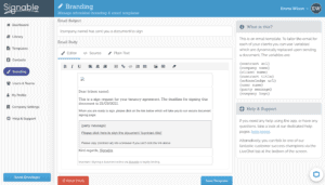 Last but not least, this feature allows you to personalise the emails your clients receive from Signable. While the branding feature is super useful to add your own company colours and logo to your emails, you also have the option to customise them further.